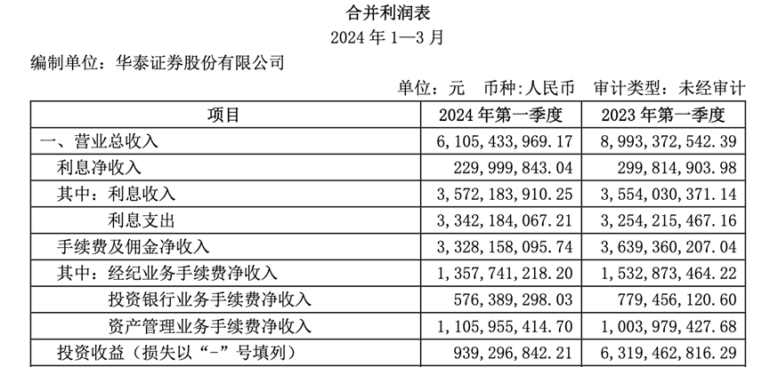 近1个月获7份研报关注!华泰证券2024年Q1成绩单:营收61.05亿元 净利润约22.91亿元